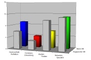 Bitte vergleichen Sie jeweils die Höhe der gleichfärbigen Säulen: Beträgt der Höhenunterschied maximal 1 Gitternetzlinie, besteht keine Änderungstendenz, 2-3 Gitternetzlinien: Veränderungstendenz, 4-5 Gitternetzlinien: extreme Veränderungstendenz.