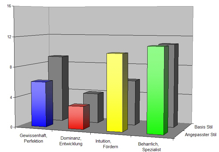 Dies wirkt sich aber nicht unmittelbar auf Ihren Basis–Stil aus. Diese Veränderungen und die unterschiedlichen Anforderungen des Arbeitslebens erfordern von Ihnen oft differenzierte Reaktionen, was zur Entwicklung eines der Arbeit angepassten Verhaltensstils führt, des angepassten Stils.