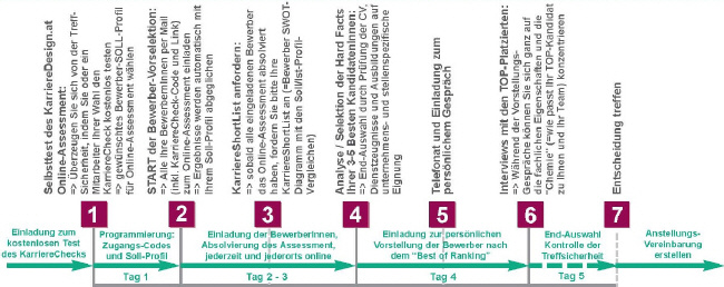6. Interviews mit den TOP-Platzierten: => Während der Vorstellungs-Gespräche können Sie sich ganz auf die fachlichen Eigenschaften und die "Chemie" (= Wie passt Ihr TOP-Kandidat zu Ihnen und Ihrem Team?) konzentrieren.